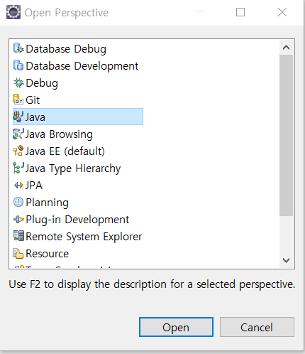 Java 선택하고 Open 눌러주세요 ( JAVA EE가 아닌 JAVA 를 사용하기 위함입니다 )