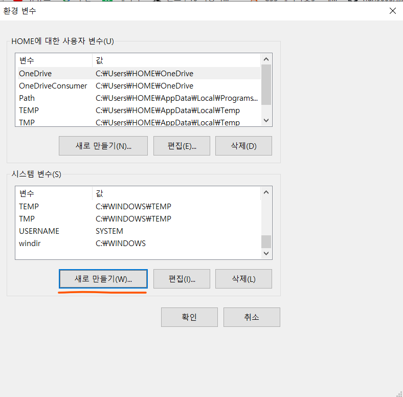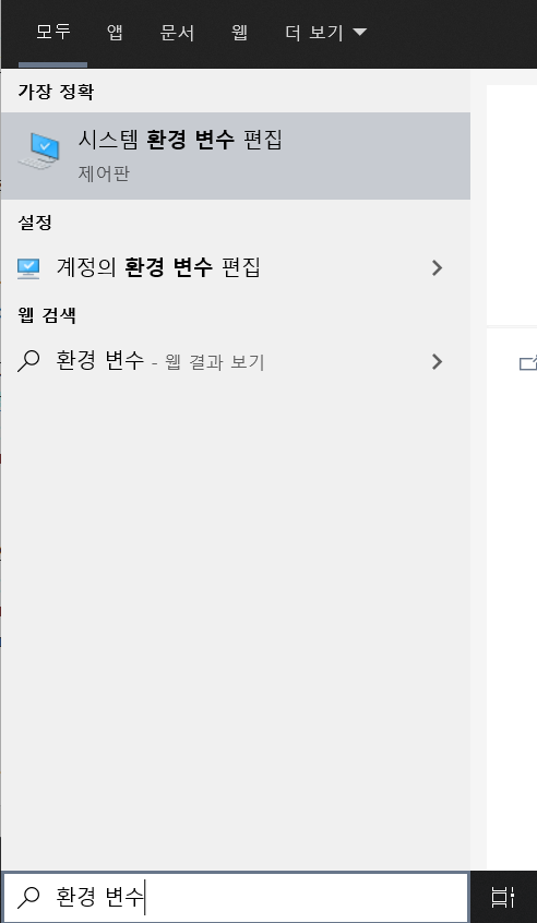 검색창에 환경 변수를 입력하셔서 시스템 환경 변수를 찾아가세요
