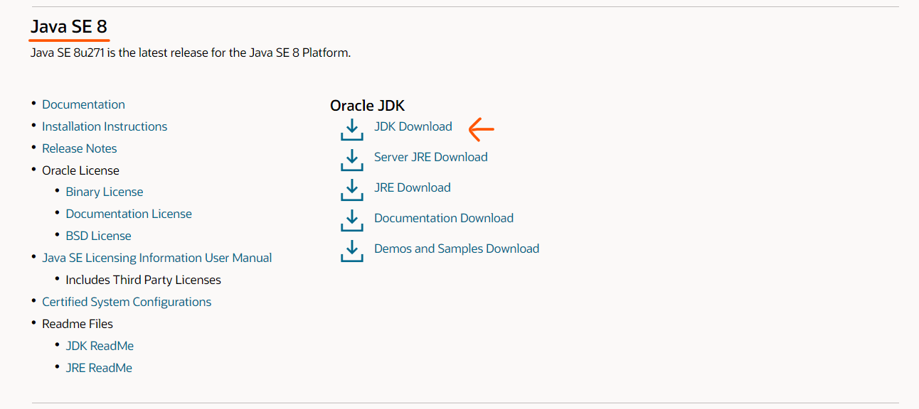 스크롤을 내려서 Java SE 8를 찾으신 뒤 JDK Download를 클릭하세요