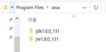 설치를 마치셨으면 이렇게 Java 폴더안에 jdk와 jre가 자리잡고 있습니다. 버전에 따라 폴더명은 다를 수 있습니다.