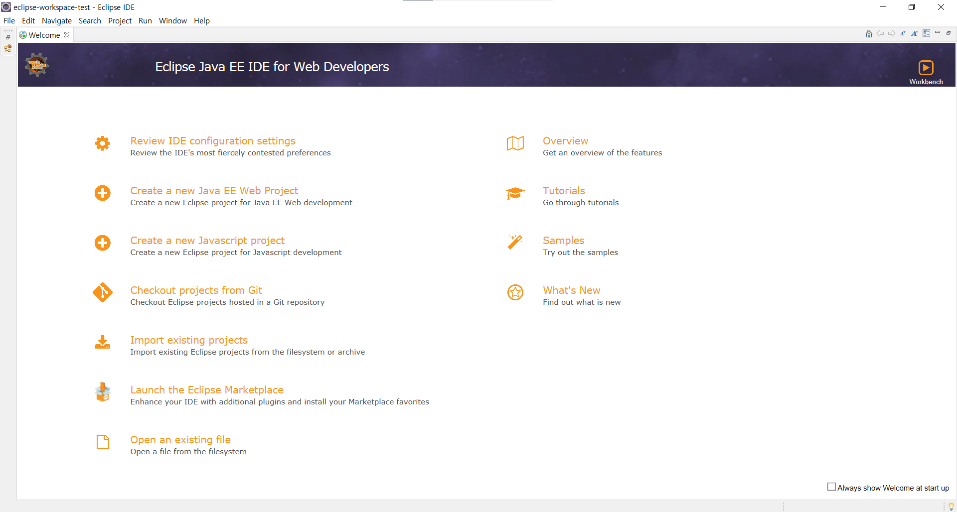 설치과정을 마치고 나면 뜨는 이클립스 메인화면
