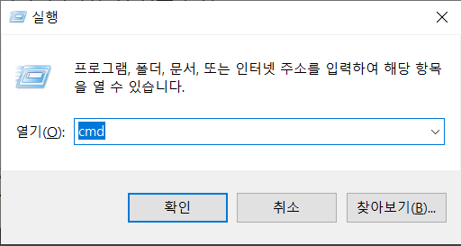 Window버튼 + R 또는 시작 - 오른쪽버튼 - 실행 하신뒤에 cmd를 입력하세요